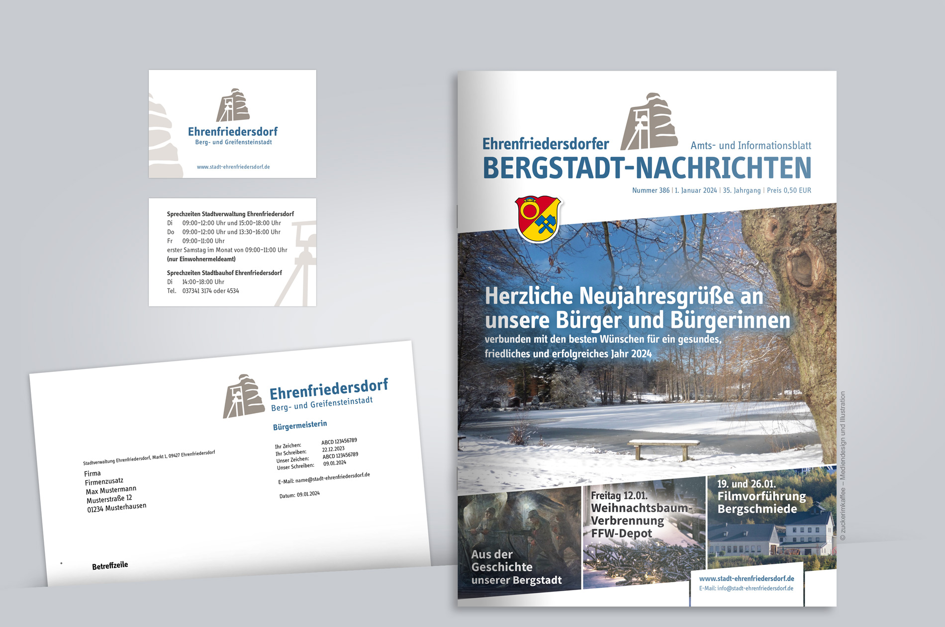 Mit dem Jahreswechsel 2023/2024 besitzt die Stadt Ehrenfriedersdorf ein neues Erscheinungsbild.