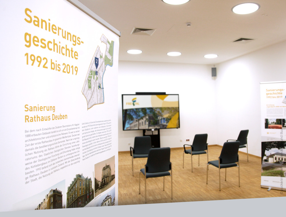 Ideal für Sammler der Stadtgeschichte. Hier entstehen Dokumentationen über die Sanierungsgeschichte in gedruckter Form. Die Gestaltung kann sich am Corporate Design orientieren oder als Neugestaltung zur Umsetzung kommen. Wichtig ist die anschauliche Darstellung der Sanierungsvorhaben. Dies kann mit Gegenüberstellung von alt und neu, anhand von Informationsgrafiken oder Architekturfotografien erfolgen.